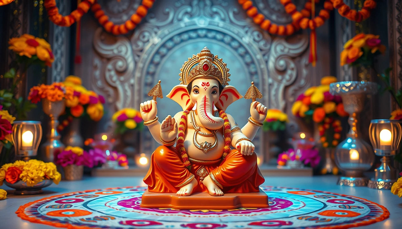 Elegant Ganpati Tealight Holder with Pearl White Gold Finish